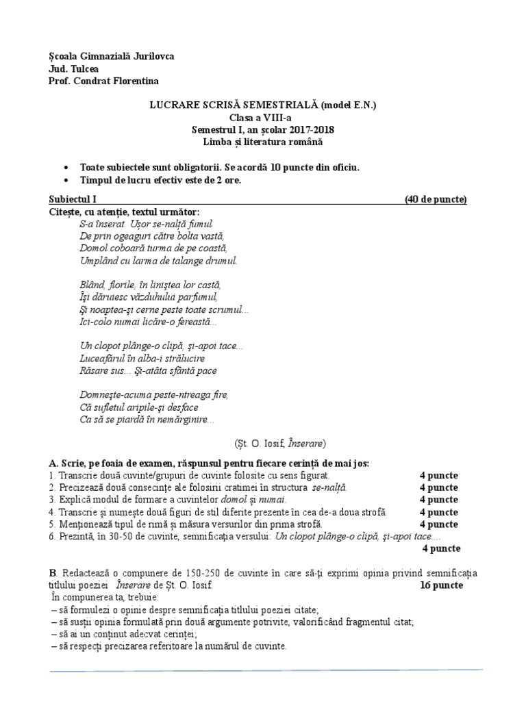 Simulare Evaluare Nationala Pentru Elevii De Clasa A 8a Februarue 2013 Limba Romana