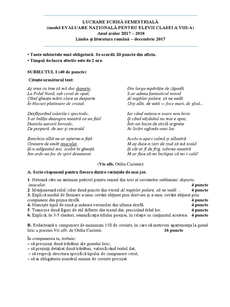 Rezolvari Subiecte Simulare 2019 Proba La Lb Romana Clasa A Viii A