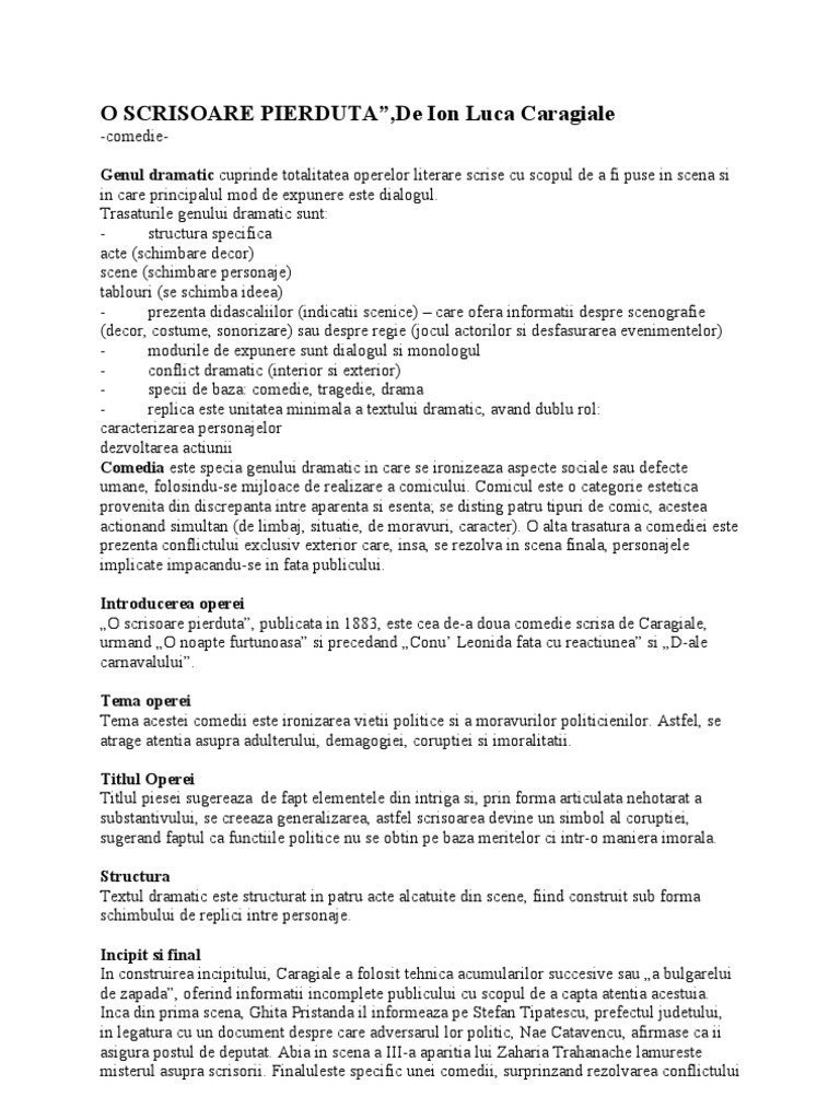 Particularitati Constructie Personaj Text Narativ Sau Dramatic Caragiale O Scrisoare