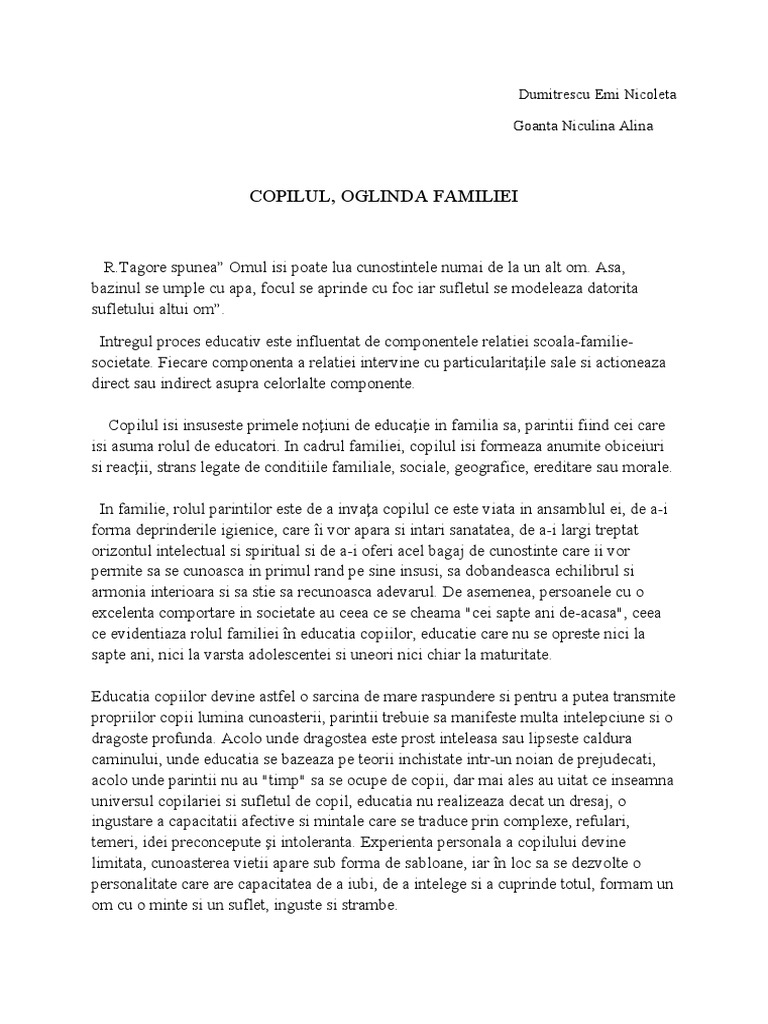 Licenta Rolul Scolii Si Al Familiei Contemporane In Educatia Copiilor 321834 Graduo