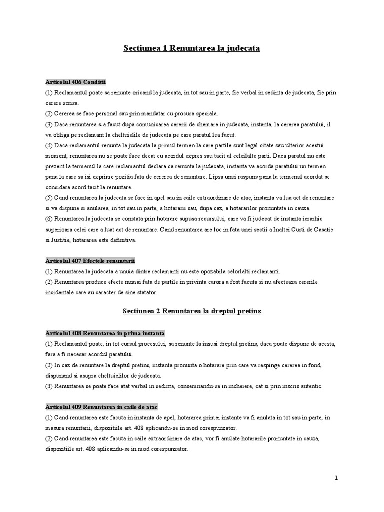Renuntarea La Judecata Si Renuntarea La Dreptul Pretins Art 406 410