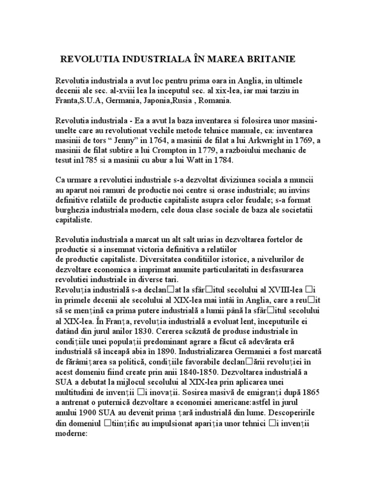 Referat Desfasurarea Revolutiei Industriala In Anglia Comparative Cu Rusia Istorie Universala 70726