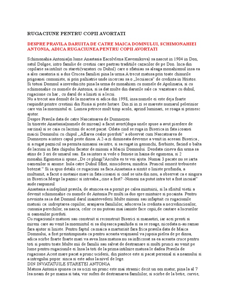 Despre Pravila Dăruită De Către Maica Domnului Schimonahiei Antonia Adică Rugăciunea Pentru Copiii Avortați Proiectul Social Răsuceni