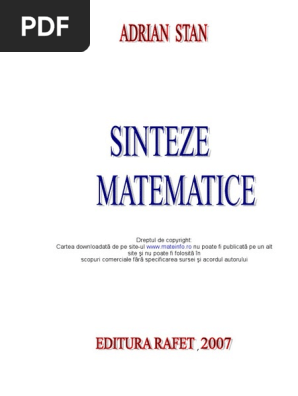 Pdf Selectie Sinteze Matematice Algebra Geometrie Analiza Matematica Elis Achim Academia Edu