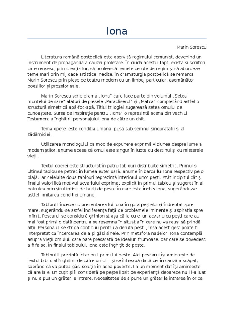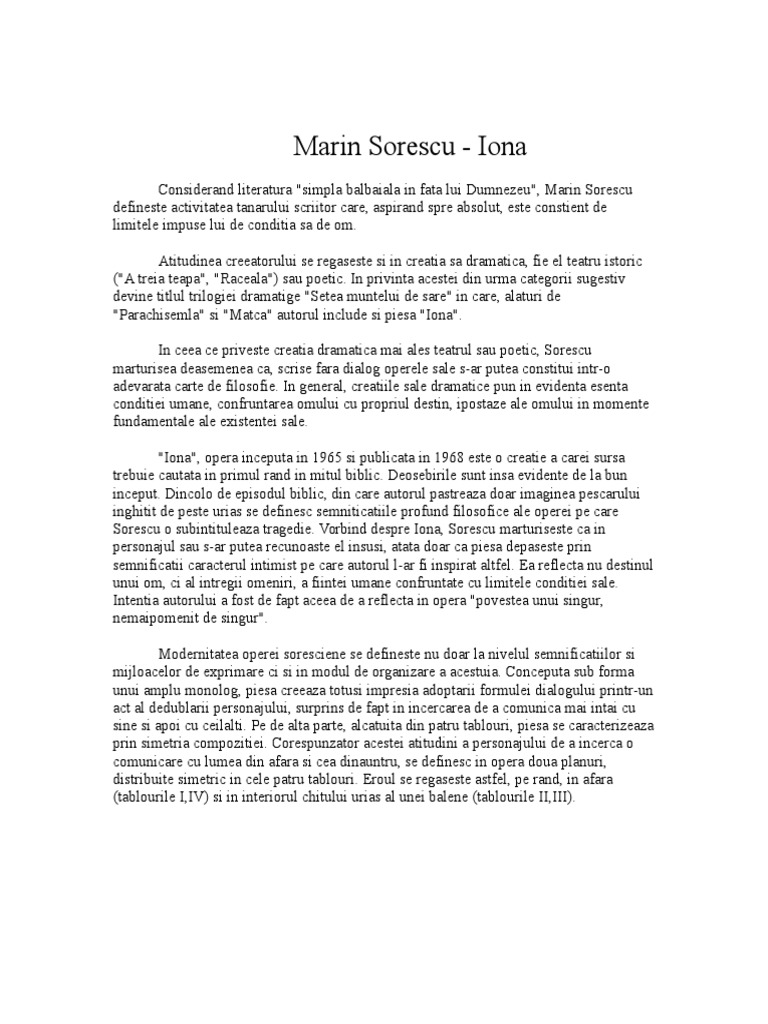 Pdf Iona De Marin Sorescu Operă Dramatică Aparținand Perioadei Postbelice Bogdan Bogdan Academia Edu