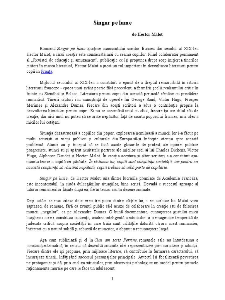 Http Scoalaturluianu Info Wp Content Uploads 2015 02 Hector Malot Singur Pe Lume Pdf