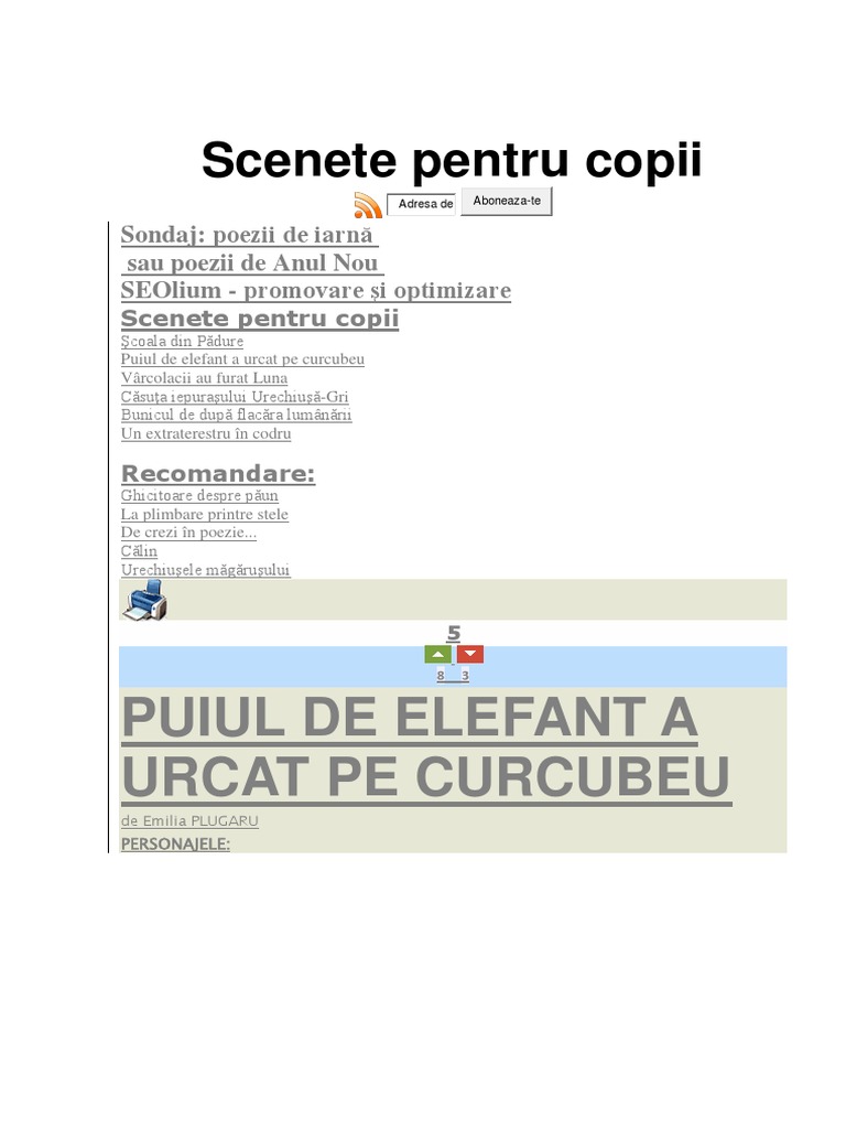 Puiul De Elefant A Urcat Pe Curcubeu Scenetă De Emilia Plugaru