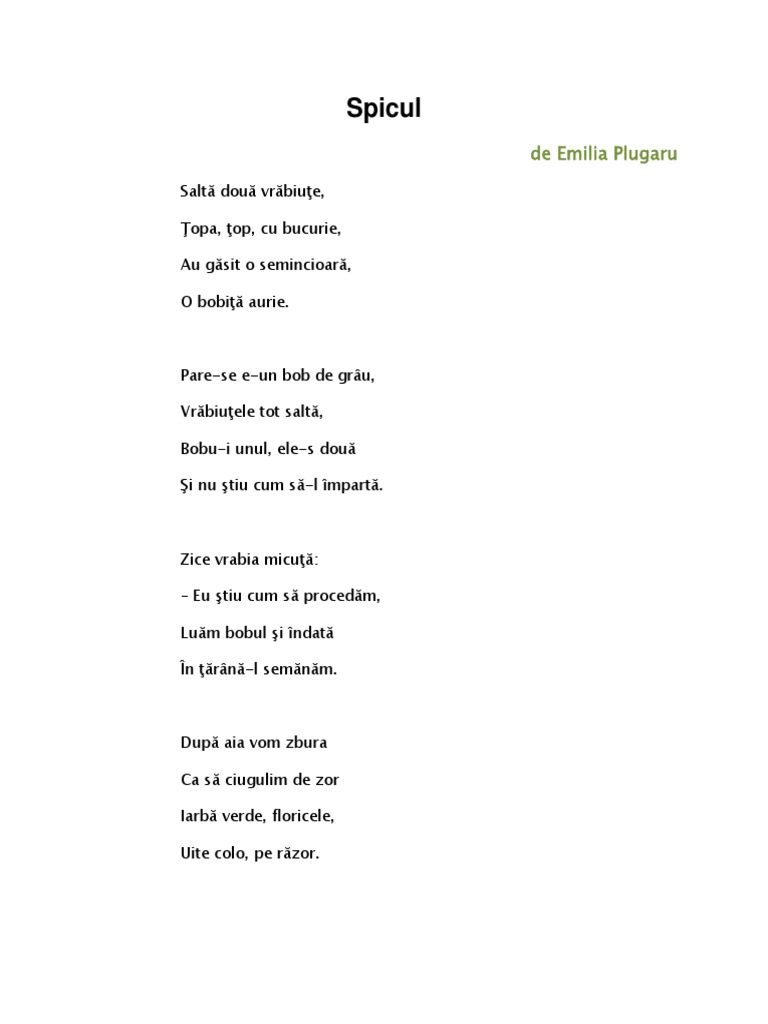 Spicul De Emilia Plugaru