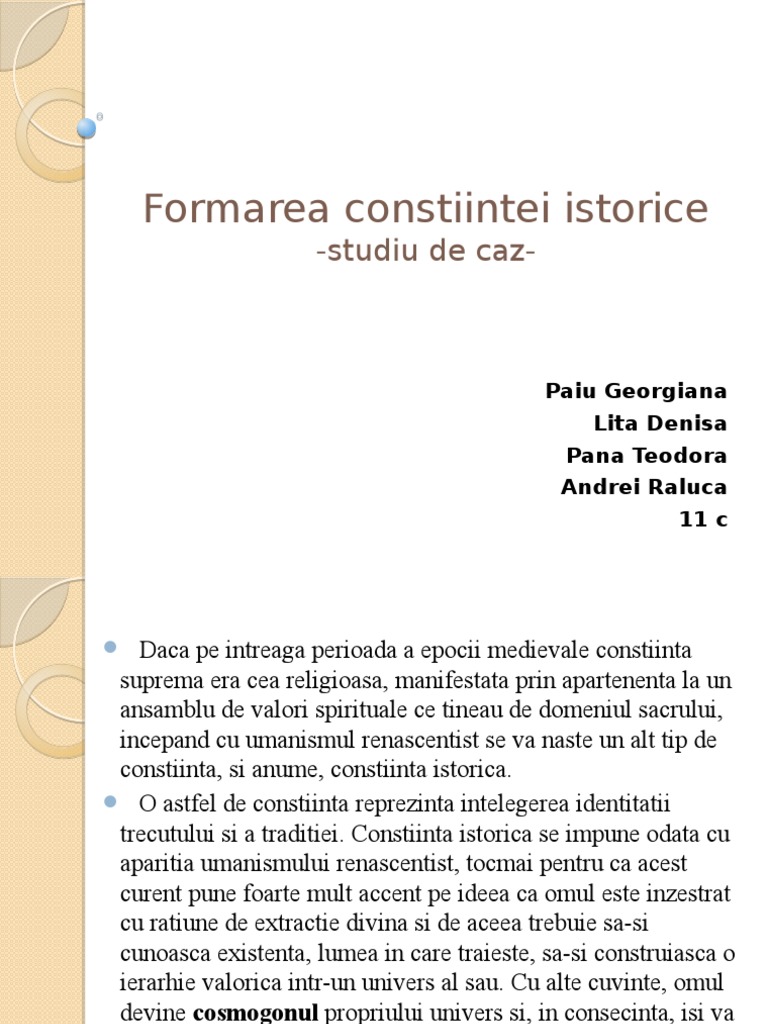 Studiu De Caz Formarea Constiintei Istorice