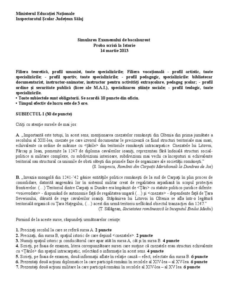 Bacalaureat 2013 Subiectele La Istorie Ce Părere Aveţi