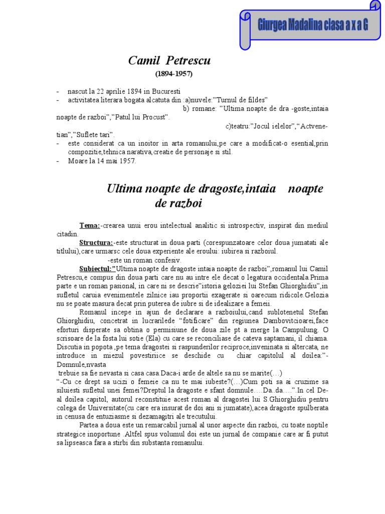 Www Referat Ro Camil Petrescu Ultima Noapte De Dragoste Doc4c429