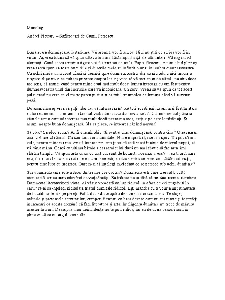 Referat Suflete Tari De Camil Petrescu Romana 232987