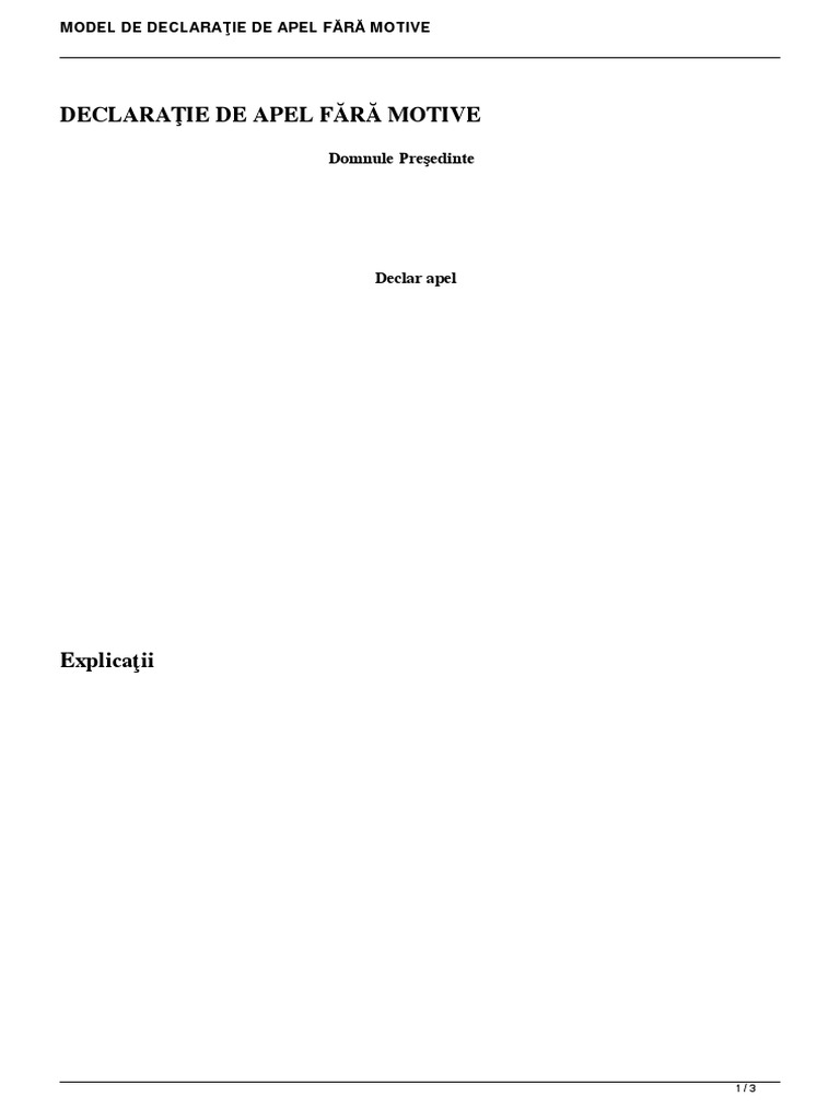 Model Declaratie Apel Fara Motive