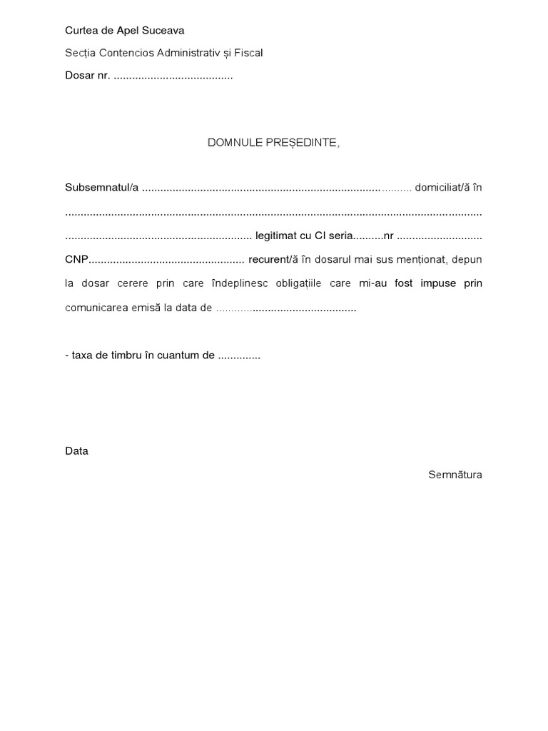 Model Cerere Depunere Acte La Dosar