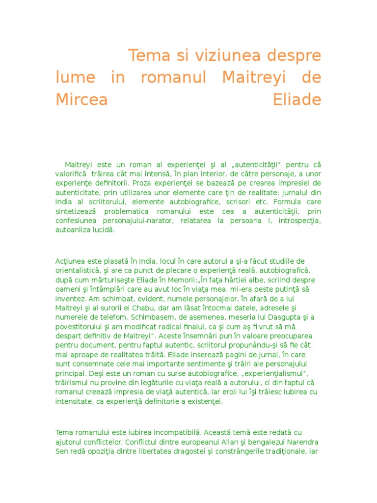 Tema Si Viziunea Despre Lume In Romanul Maitreyi