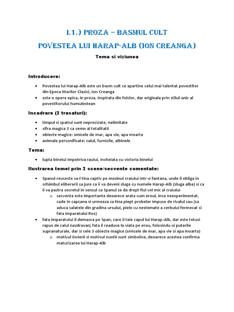 Povestea Lui Harap Alb Ion Creanga Comentariu Audio Youtube