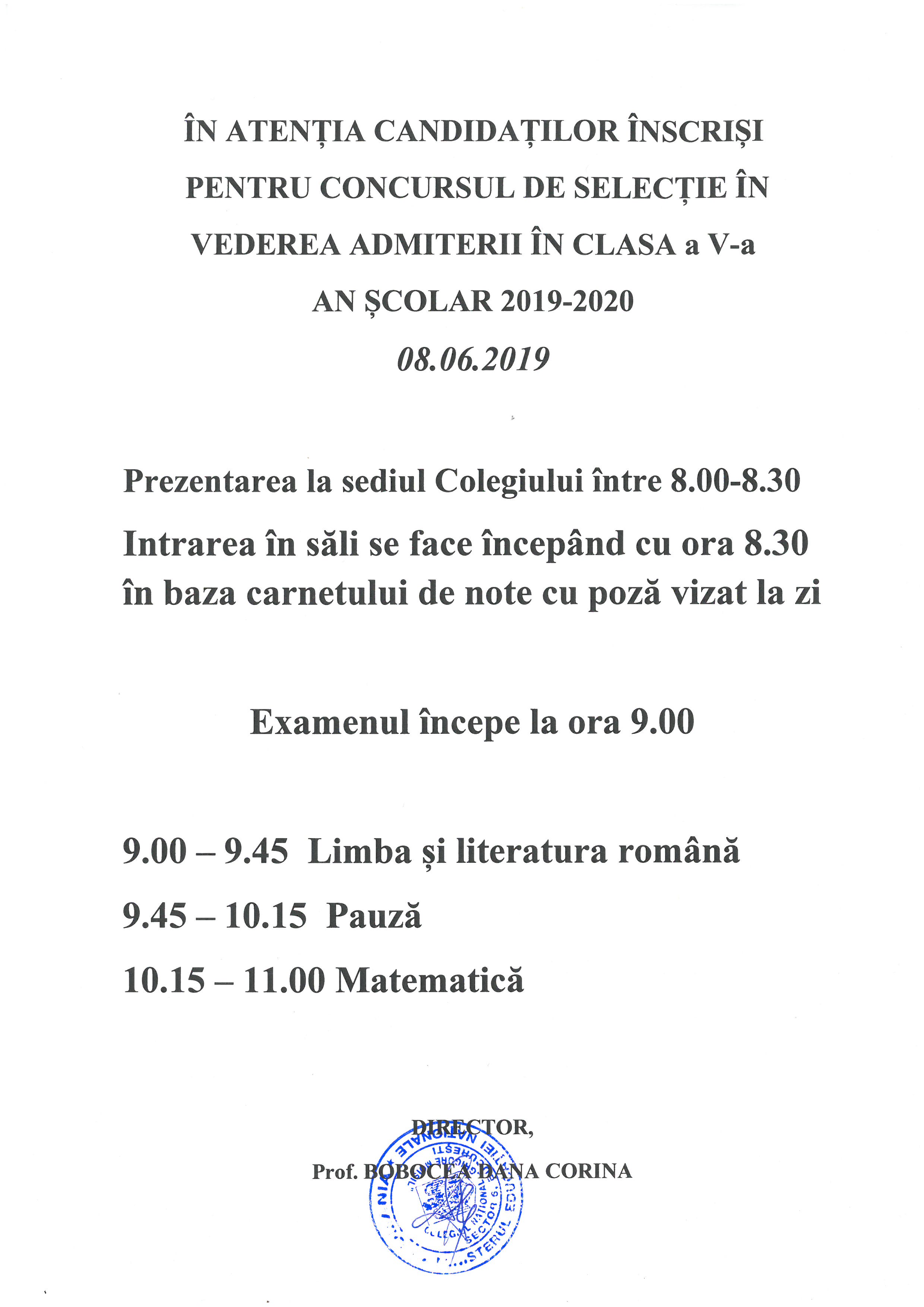 Admitere Clasa A V A Examene Colegiul National Grigore Moisil