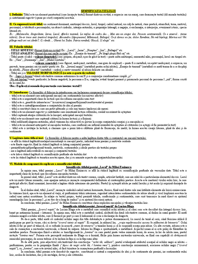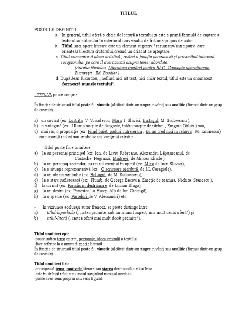 Titlu Analitic Si Sintetic