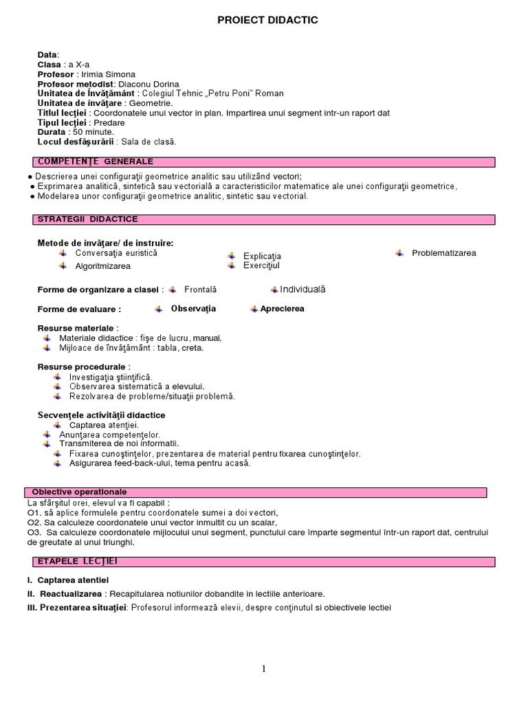 Coordonatelete Unui Vector Impartirea Unui Segment