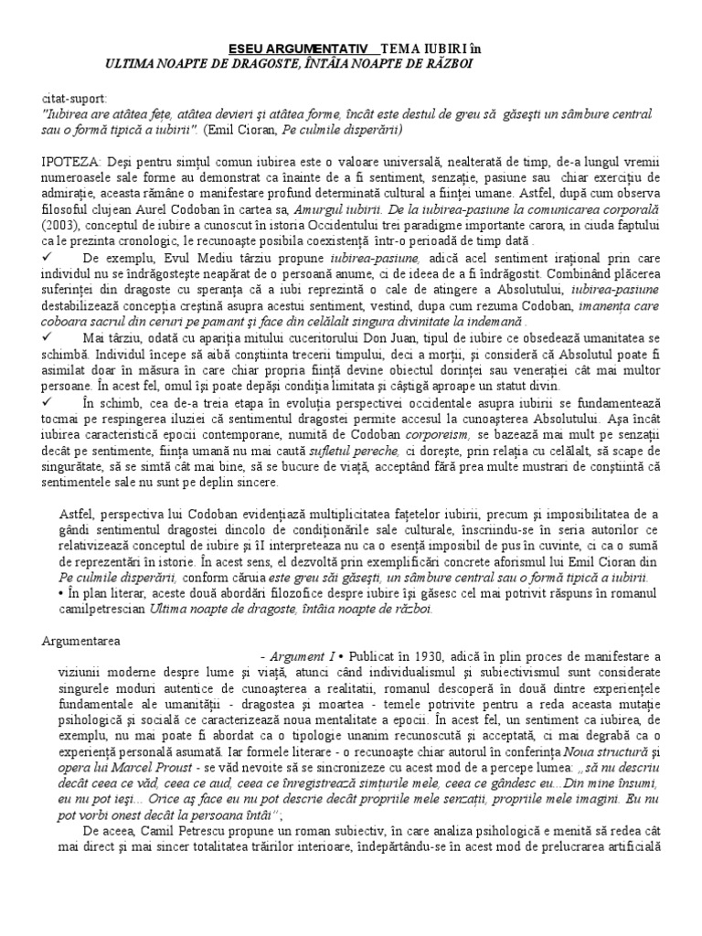Eseu Argumentativ Tema Iubiri In