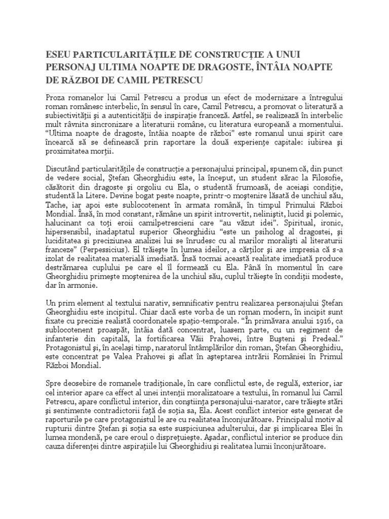 Doc Eseu Relatia Dintre Doua Personaje Ultima Noapte De Dragoste Intaia Noapte De Razboi Albert Mihai Academia Edu