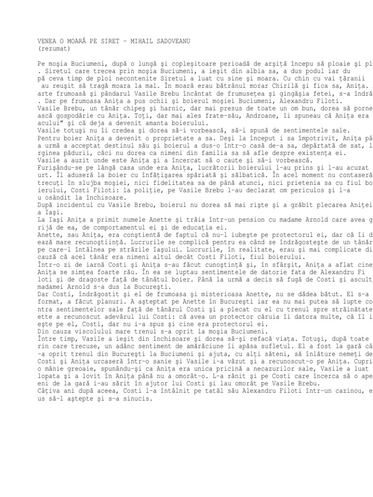 Venea O Moara Pe Siret De Mihail Sadoveanu Rezumat 89fb3