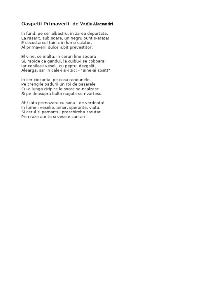 Oaspetii Primaverii De Vasile Alecsandri Anideșcoală Ro